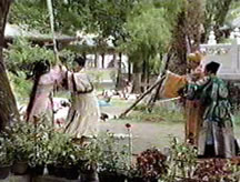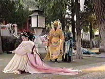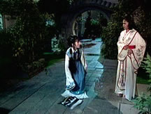 「小姐!小姐!」丫鬟梅香邊追邊喊著,可袁瑞蘭頭也不回的逕自向前走,來到後花園,她將手中的一塊布用力扔在地上。