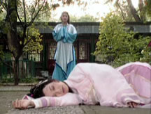被安置在床上的長平沒半點清醒的跡象,費宮人慌了,強迫自己定下心來。她一把抓起屏風上掛著的華衣霓裳披在身上,竟裝作長平的模樣衝出了慈寧宮,向著長平上吊的含樟樹跑去。 |
