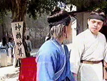李自成奪宮篡位之後,逼死皇帝、追殺皇子的殘暴行為引起民眾不平,在城門口是紛紛議論譴責,走過的倆壯年農夫更在一旁指指點點:「……我看是李自成江山不保才出此下策。」「喂,兩位!」一聲呼叫讓兩人立定腳步,轉頭看去,卻是一算命先生。咦?這算命先生可不正是周世顯 |