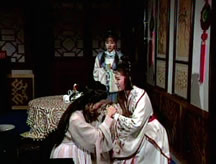 「小姐!這可怎麼辦呢?」梅香問。萬一長平公主被發現的話……這後果不堪設想啊,袁瑞蘭也急得使勁想辦法。最後她鎮定的向梅香交待:「我看,你先去把公主藏好,千萬別出聲!我去應付她們!」