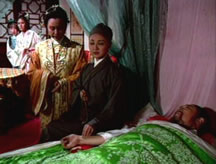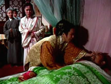 屋子裡,智慧師太正在為躺在床上的袁奎察看病情。袁夫人、袁瑞蘭和梅香都在一旁等著師太診斷的結果如何。只見智慧師太把完他的脈相,眉頭微皺著道:「相國爺怎麼會突然病得這麼厲害?」