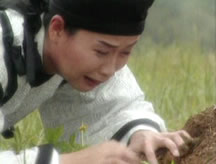 渾渾噩噩跟在採藥人身後,沒走多久就來到一片寬闊的空地,但見周圍芳草萋萋,一簡陋的墳墓在空地中微微隆起,而那塊薄薄的木板就是墓碑。