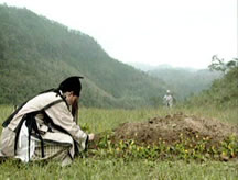 突然,有一個人由山腳下緩緩朝長平的假墳走過來。 |