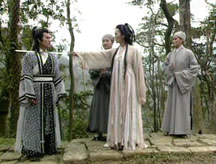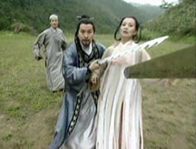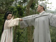 | 次日,長平與慧清一同來到山中。相互向對方示意後,二人開始比試劍法。如今的長平,武功也已大有長進,轉眼之間,她的劍術和慧清不相 |
