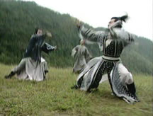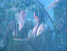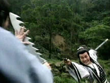 | 上下,難分難解。二人在空中樹間不時翻越、轉閃,頓時,從空中落下後,各自的劍鋒同時抵住了對方的脖頸,看來真是在伯仲之間。隨後兩人同時收回手中的劍,會心一笑。 |