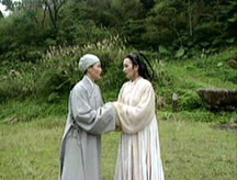 長平獨自一人坐在瀑布前:「雙樹含樟傍玉樓,連枝連理幾經秋;他無倘遇彌天劫,可有堅貞共去留?」這首當初和周世顯一起吟過的誓詩,如今一出口,又感到時過境遷,今非昔比,長平心中不禁傷感不已。 |