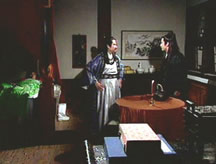 勤王爺默默地品茶,一旁的婉君卻如坐針氈。
