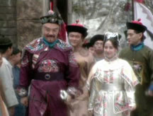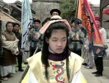 在老百姓夾道歡迎的掌聲中,兩列清兵隊伍緩緩步入正街。凱歌高奏,得勝旗迎風飄擺,原來是羅克勤王爺班師回京了!只見勤王爺和婉君格格走在隊伍的最前面,意氣風發、面露喜色;此次帶兵平定南明,可謂順水又順風,為大清的江山一統立下大功一件,怎能不叫人高興呢? |
