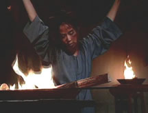 「民不畏死,何以死懼之?我曾經跟你說過,自從李自成闖入明宮以來,我早把生死置之度外了,你現在用死來威脅我,你真是愚蠢到了極點!」面對袁寶倫的囂張氣焰,周世顯毫無懼色。他緩緩揚起頭,用坦然自若的神情和大義凜然的言詞來回敬眼前的可笑之人,氣雖弱,但勢如虹。 |