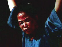 遍身青紫,道道泛血見骨的傷痕令人觸目驚心。周世顯胸中的憤怒一如身旁熊熊的爐火,不屑看袁寶倫那小人得勢的醜陋嘴臉,他只緊咬牙關微微吐出幾個字:「我不想告訴你!」