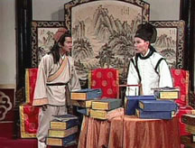 周世顯跪地包拳:「參見皇太后。」只聽得一語,驚得皇太后根本不敢相信自己的眼睛:「晚生周世顯叩見皇太后。」跪在地上的周世顯又接著清清楚楚地報上真名!